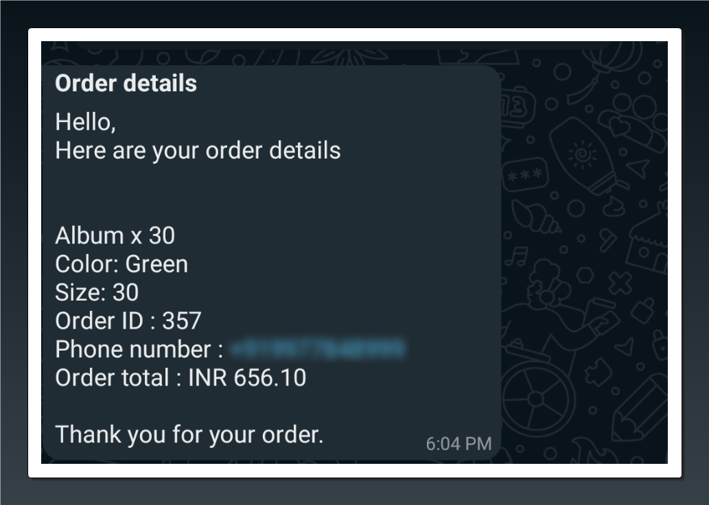 After completing these steps, your customer will receive a WhatsApp notification with the selected template and dynamic variables whenever the selected event occurs.