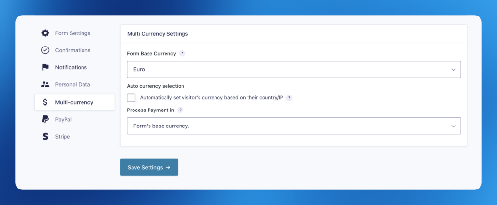 If you want to set a base currency for a form different from the global currency, you can do that by following this guide.